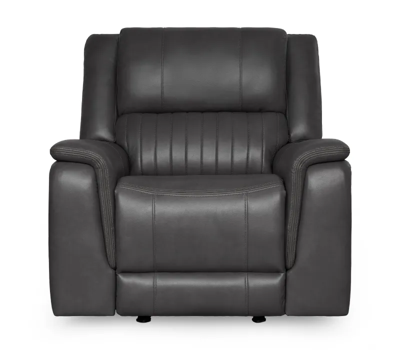 Experience the perfect blend of tough and tender with this welcoming rocker recliner. Crafted with a jumbo padded back and thick pillow top arms, it offers exceptional support and comfort. The stylish details and faux leather upholstery create a sophisticated look while maintaining durability for everyday living.